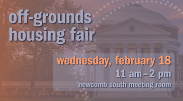 Looking for off-Grounds housing? Stop by the housing fair to research living options close to Grounds! We bring the apartment communities to you! Explore off-Grounds living choices in a fun, stress-free environment and enjoy giveaways and refreshments too!